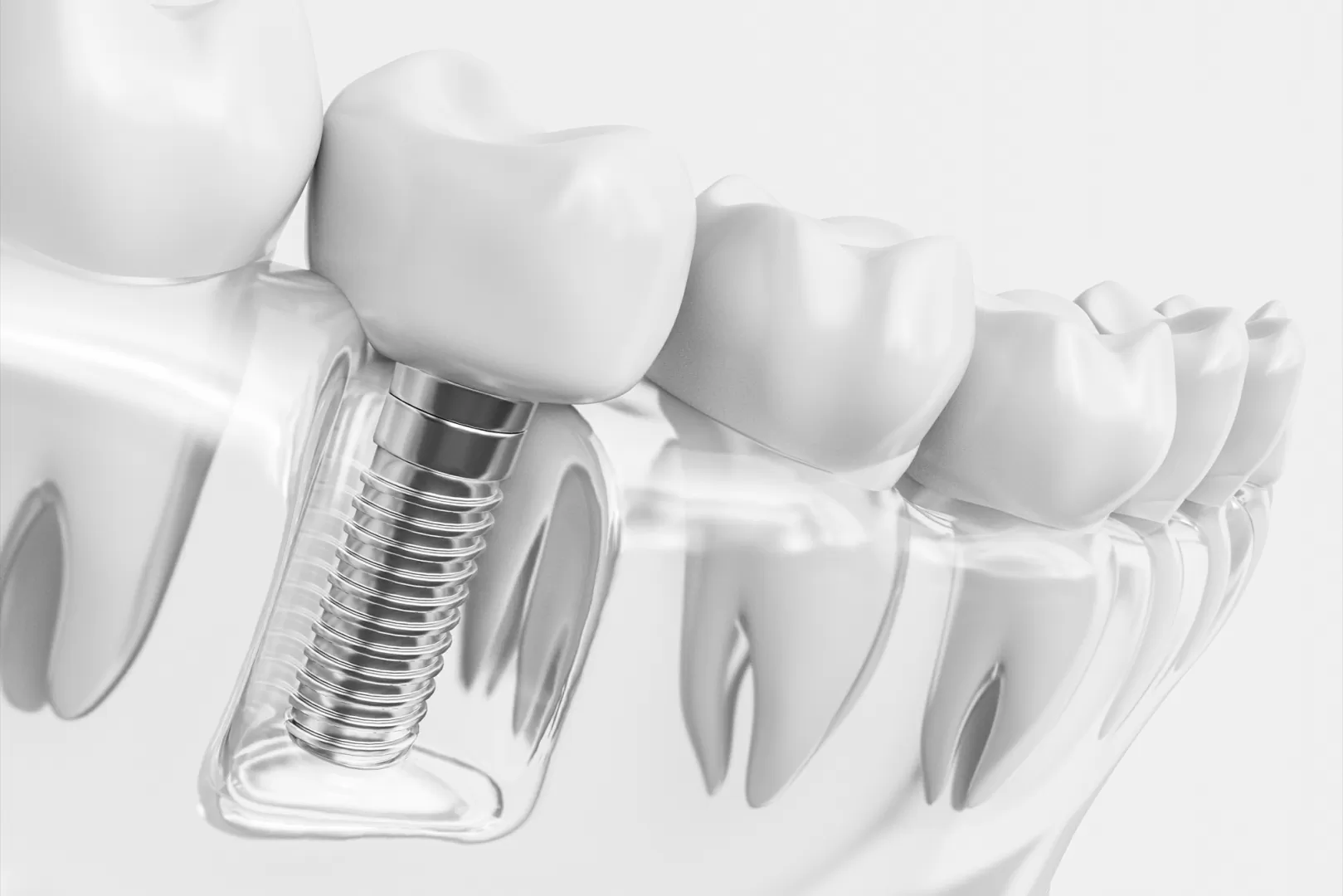 インプラント体と顎の骨がしっかりと結合したことを確認した後、最終的な被せ物(補綴物)の作製に入ります。仮歯の使用感も踏まえ、色味、形、噛み合わせを微調整することで、天然歯のような美しさと快適な食生活を形にします。